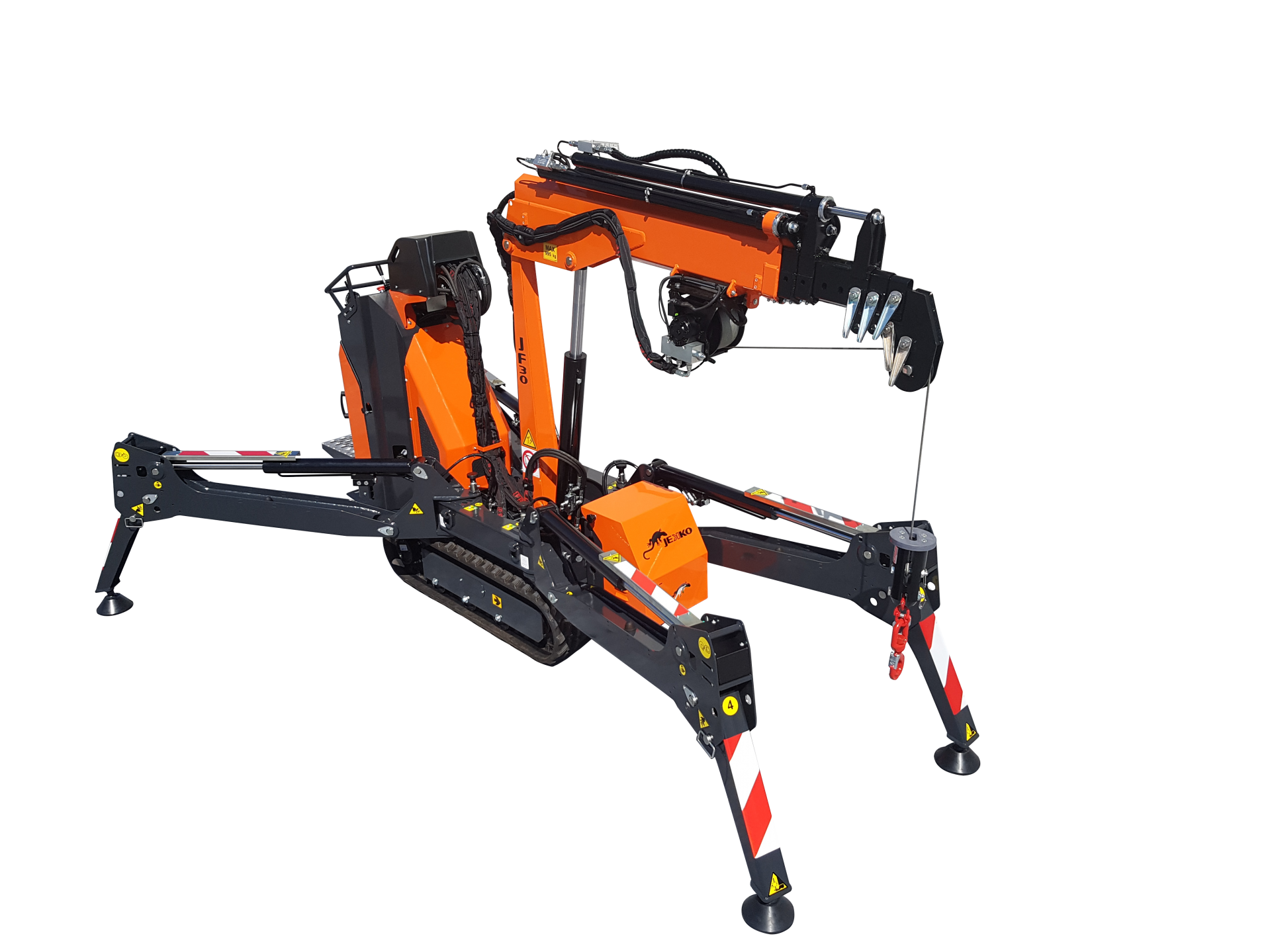 В качестве источников питания JF30 использует бензин, электричество и может функционировать от батареи аккумулятора. Кран весит всего 1400 кг.