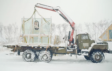 Вакуумный захват Arlifter GS-850 смонтировал несколько крупногабаритных стеклопакетов при плохих погодных условиях на строящейся базе отдыха.