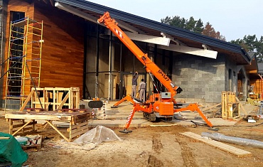 Монтаж деревянных конструкций с помощью мини-крана SPX527CDH
