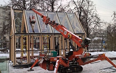 Монтаж металлоконструкций с помощью мини-крана SPX527