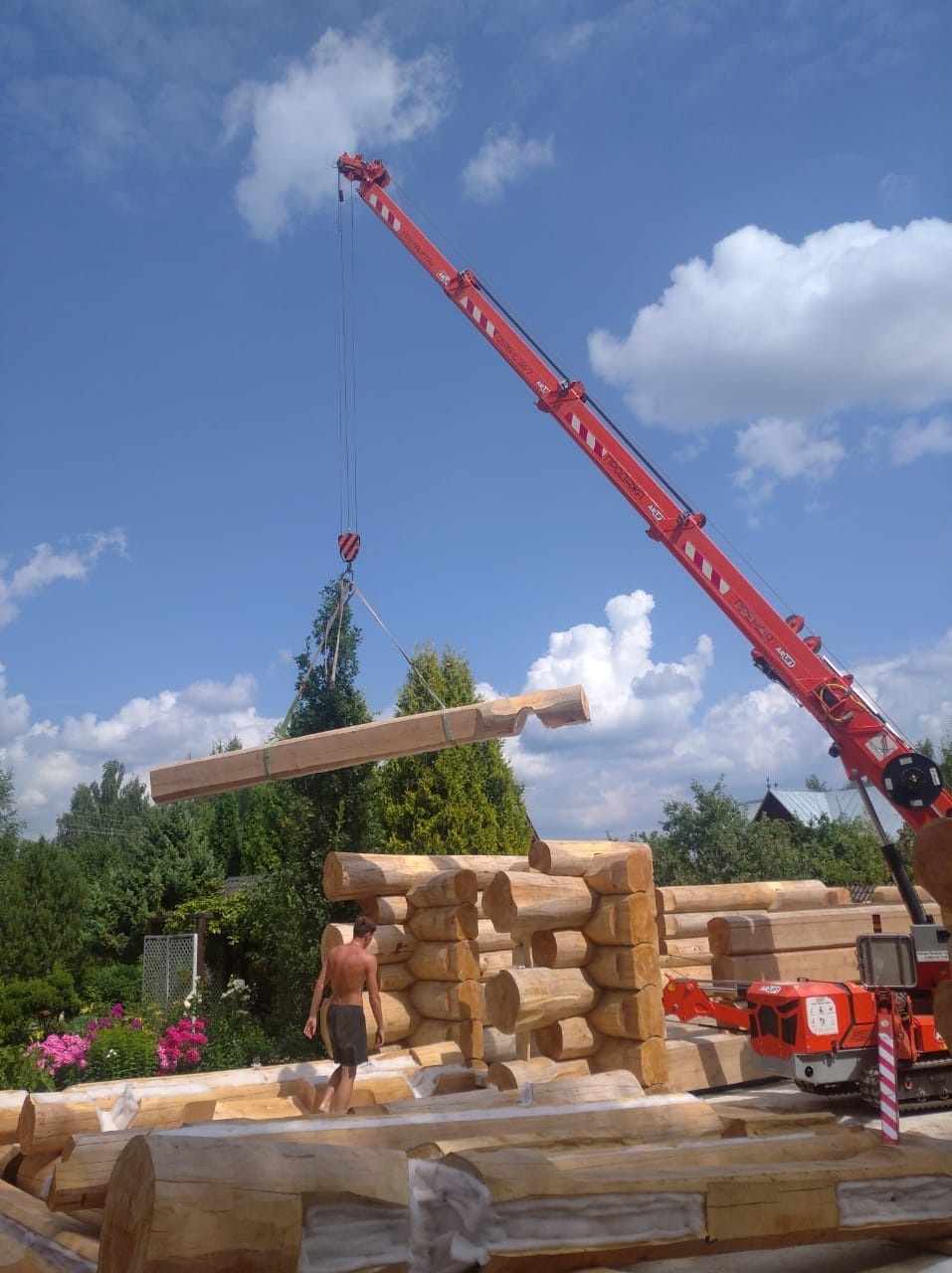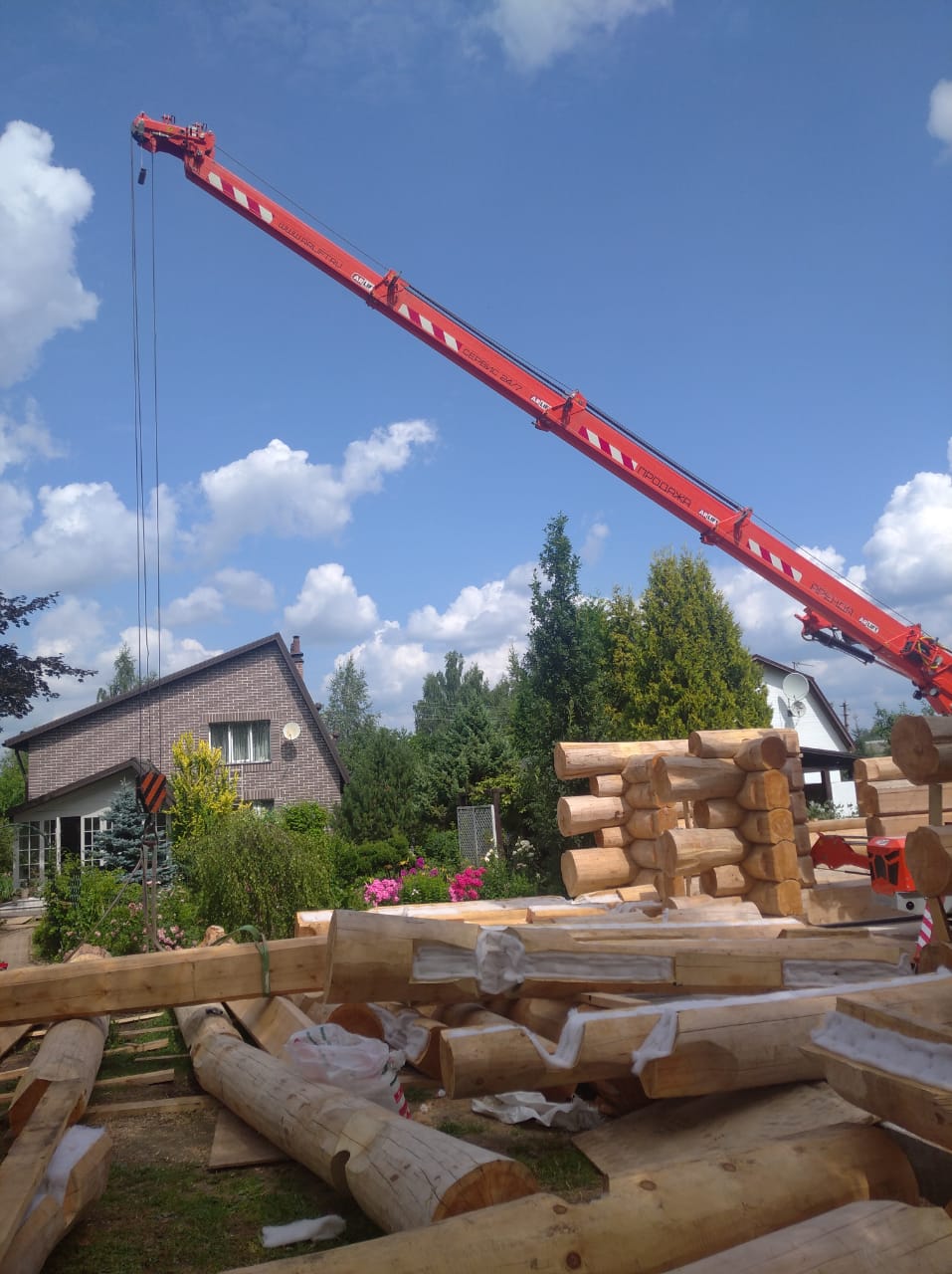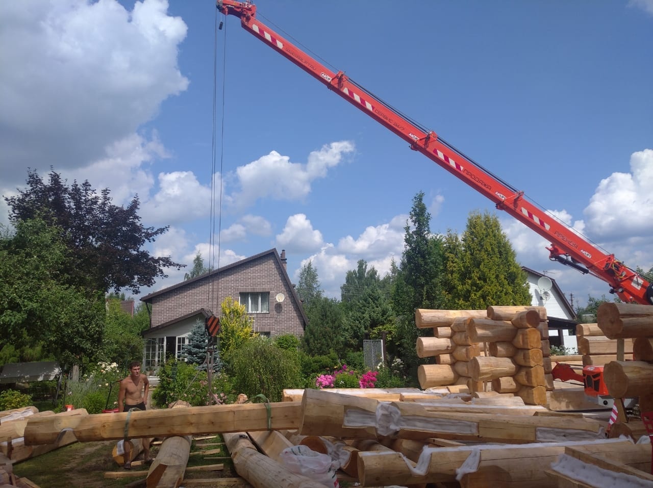 Дома из оцилиндрованного бревна являются экологичной альтернативой каркасным и газобетонным строениям. Помимо этого, к их преимуществам можно отнести энергоэффективность, а также простоту и скорость сборки, особенно, когда за дело берется мини-кран Арлифт. Монтаж бревен весом до 1,5 тонн был закончен всего за 4 дня.