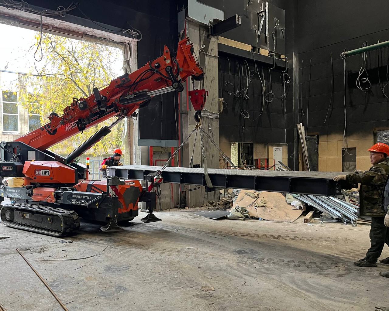 Обычно мини-кран выполняет функции поднять или опустить тяжелые грузы. В этот раз клиенту требовалось больше: захват и перевозка конструкций по объекту — между зонами монтажа внутри здания и на улице. Стандартная схема с частой перестановкой техники здесь не работала.