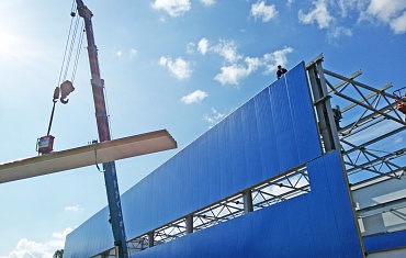 Склад. Вертикальный монтаж сэндвич-панелей