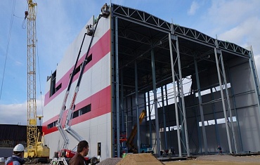 Облицовка ангара сэндвич-панелями.