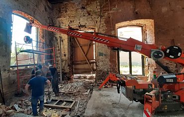 Мини-кран и вакуумный захват на реконструкции старого депо