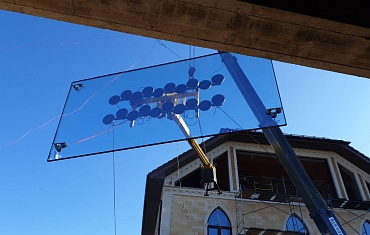 Монтаж стекла весом 1000 кг в частном доме