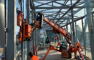 Вакуумный захват ARLIFTER GS-850 произвел монтаж стекла весом 800 кг в трудных погодных условиях при строительстве автосалона в Казани