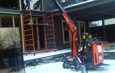 Мини-краном Jekko JF40 и вакуумным захватом ARLIFTER GS-350 был произведён монтаж стеклопакетов для коттеджа в Сестрорецке