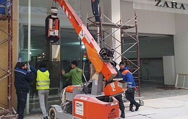 Реконструкция фасада Дворца Молодежи, Екатеринбург. Монтаж стекла весом 1100 кг