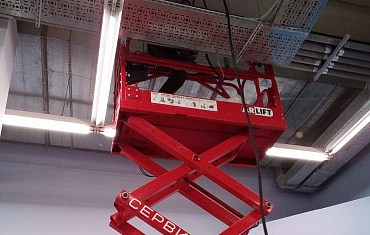 Монтаж с помощью ножничных подъемников Арлифт в магазине