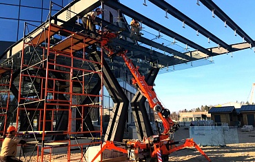 Два ножничных подъемника компании АРЛИФТ с рабочей высотой 12 метров помогли при монтаже профиля в Санкт-Петербурге