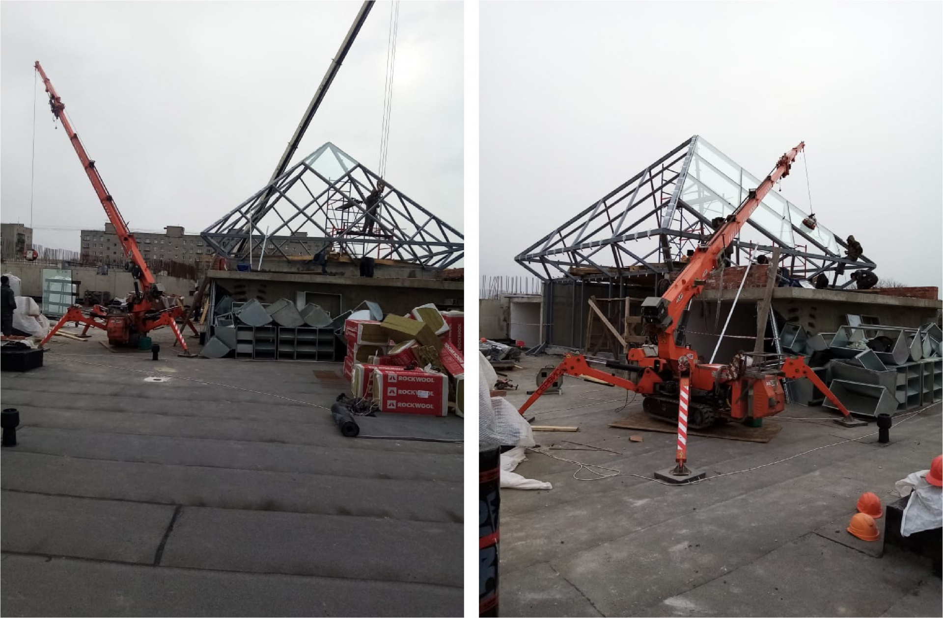 Профессиональное оборудование АРЛИФТ на монтаже зенитного фонаря