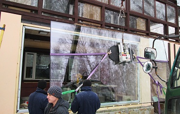 Замена стекла 2,5 х 1,5 метра, вес 240 кг